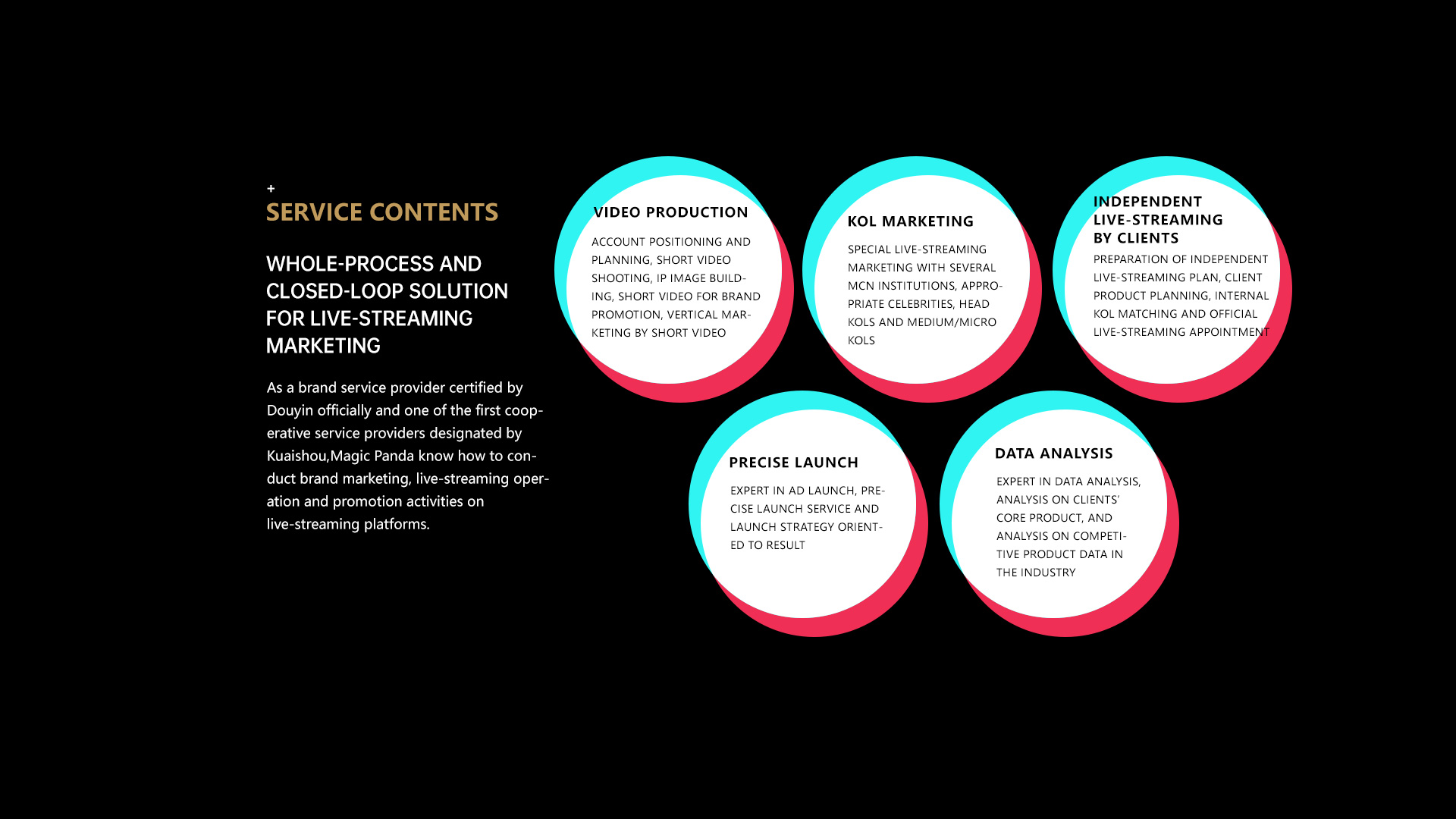 With an eye on the whole world, the visual designers of Magic Panda are skilled in expressing brands in an e-commerce-based manner from a rigorous perspective of visual expression. They also know the visual preference of e-commerce and consumers. Moreover, our professional teams of creative copywriting, photography, camera shooting, video production and design, can provide clients with services such as brand packaging, store visual design, creative ad shooting, short video shooting/editing, plane shooting/post production as required, so as to assist clients to stand out from the crowd in the market.